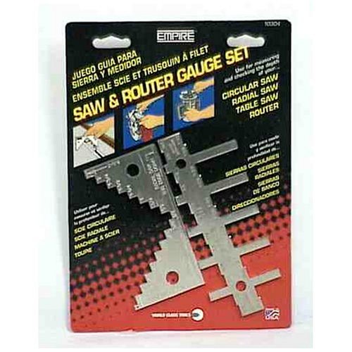 Sold as each. For setting depth of router bit, table saw or circular saw blade. Permanently stamped numbers. Aluminum. Card/2 . Manufacturer number: 10304. Country of origin: United States. Distributed by Empire Level Mfg Corp.you looking for low price Empire Saw & Router Gauge Set (10304)?